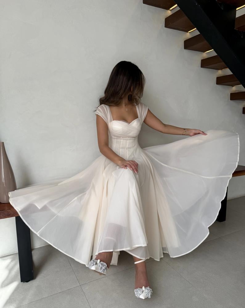 بشكل عام، الفستان مناسب جدًا للمناسبات الرسمية كحفلات الزفاف أو السهرات الفاخرة، ويجمع بين الأناقة والرقي والبساطة في التصميم