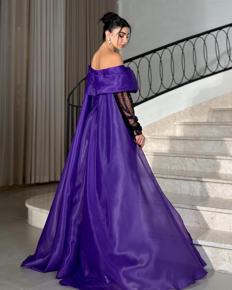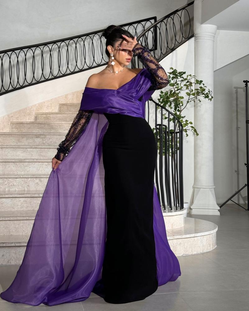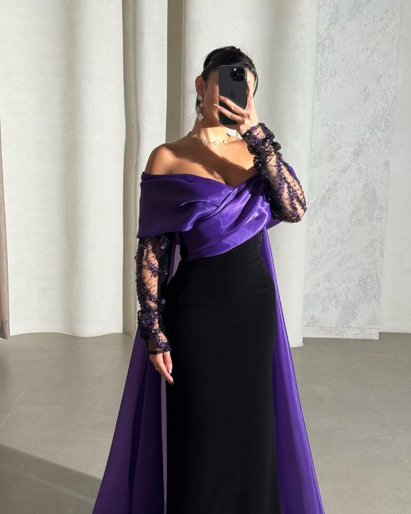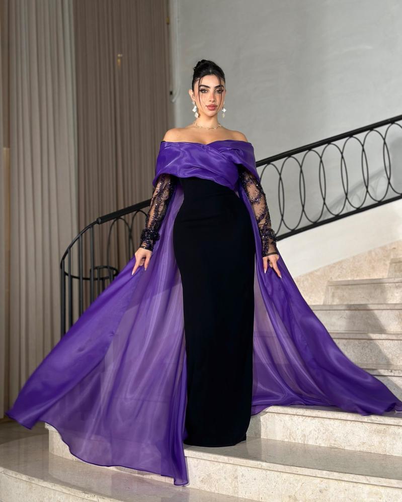 الفستان الأسود ميكادو يتميز بتصميم فخم يجمع بين الأناقة والبساطة. يأتي الفستان بقصة ضيقة عند الخصر ليبرز جمال القوام، ثم ينسدل بتنورة واسعة وطويلة تصل حتى الأرض، مما يمنح الإطلالة طابعاً ملكياً. منطقة الصدر بقصة ناعمة ” أو بتصميم مستقيم يعكس الأناقة الكلاسيكية، مع حمالات رفيعة تضيف لمسة أنثوية ناعمة. قماش المخمل يمنح الفستان لمعة خفيفة تحت الضوء، ويعزز من فخامته ورقيّه. يمكن تنسيق هذا الفستان مع إكسسوارات بسيطة كحقيبة صغيرة أو حلي ذهبية ناعمة، ليكتمل المظهر بأسلوب أنيق وجذاب يناسب المناسبات الراقية
