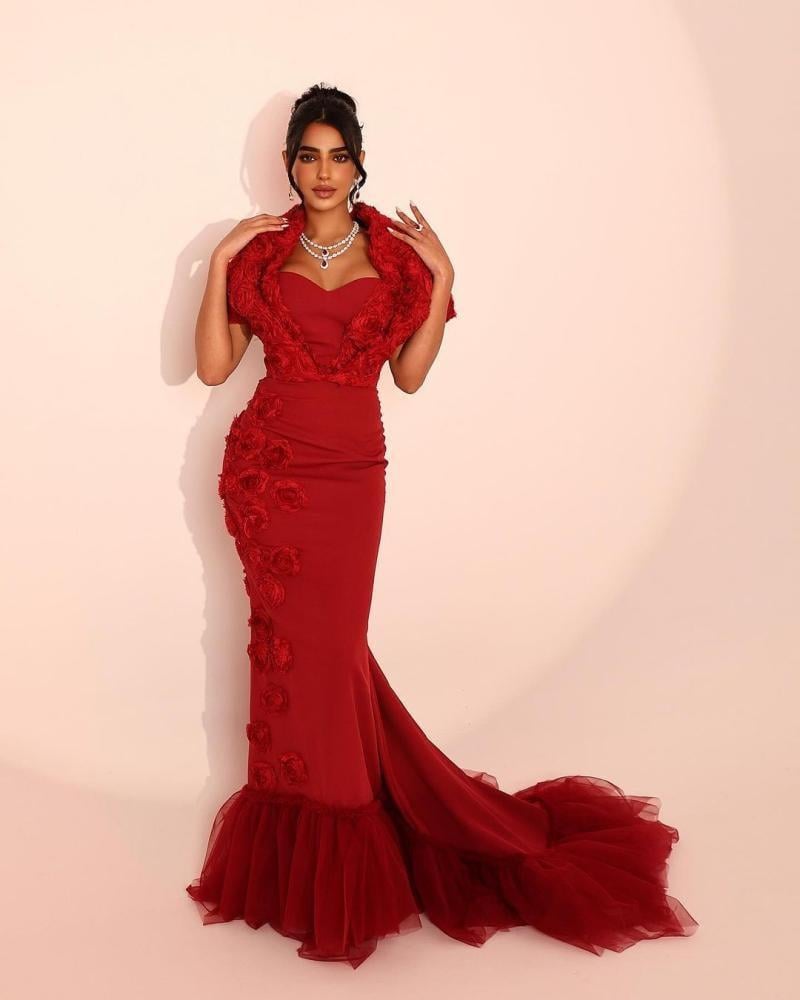 كلفة متقنة تضفي لمسة فاخرة وتزيد من تألق الفستان.