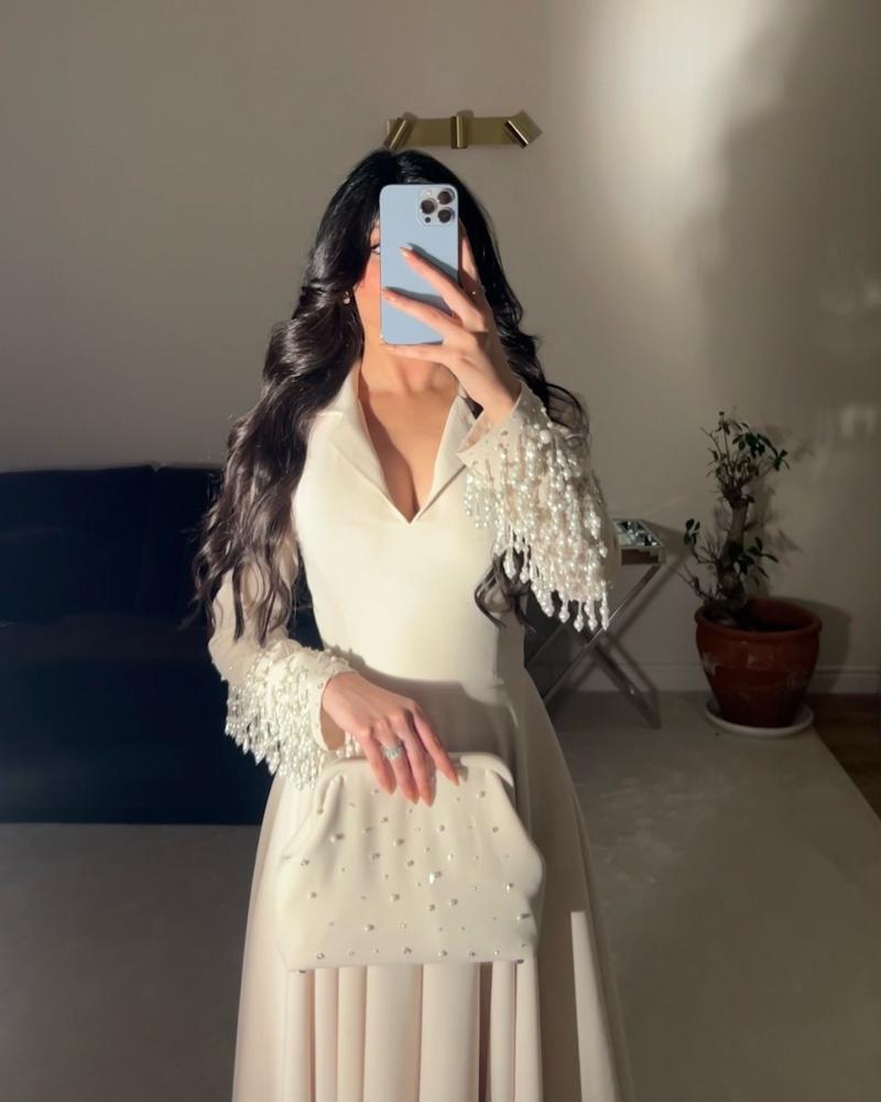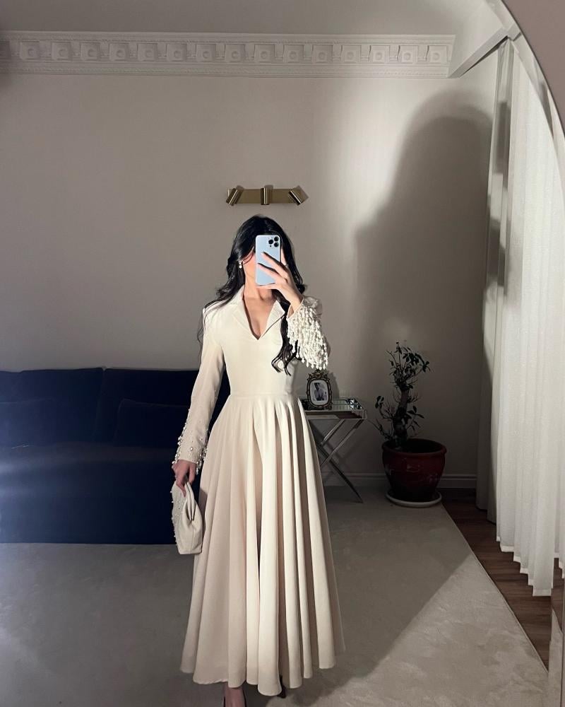 فستان بيج بفصوص على الاكمام وشنطه تجي مع الطلب